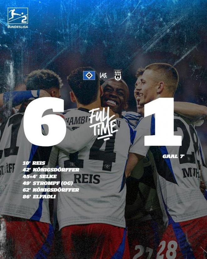重返德甲!汉堡6-1大胜乌尔姆,柯尼希斯多费尔双响
