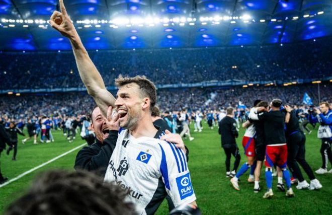 不容易!汉堡时隔7年重返德甲,圆满收官,全队狂欢